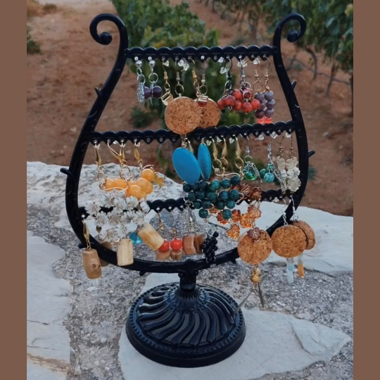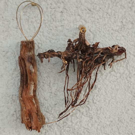 Εκ των υστέρων, συνειδητοποίησα πως στην θέασή του ξύπνησαν μνήμες παιδικές, από στιγμές βιωμένες με τον πατέρα μου, σε ένα άλλο οινοπαραγωγικό χωριό της Ηλείας από όπου φέρω την καταγωγή μου. Είχαμε κάποτε ως οικογένεια ένα αμπέλι, όπως και οι περισσότεροι της περιοχής που μας παρείχε τον σεβαστό οίνο της χρονιάς και όλες τις χαρές που η πορεία του από το χωράφι ως το κατώφλι έφερνε στις καρδιές μας. Κάτω από το σπίτι μας φυλάγαμε σε ειδικό δροσερό και σκιερό χώρο ένα βαρέλι με κρασί δικής μας παραγωγής, σε έναν τόπο λίγο μυστικό και κάπως απόκοσμο, ίσως και λίγο τρομακτικό στα παιδικά μου μάτια. Το αμπέλι μας πουλήθηκε σε ηλικία που δεν είχα λόγο και πέρασε από την ιδιοκτησία μας, μαζί με τις μυριάδες, ως δακρύων αναμνήσεις, σε άλλα χέρια. Ίσως κάποια νοσταλγία λοιπόν έβαλε πρώτα στο μυαλό και μετά στα χέρια μου την απόπειρα να δώσω δεύτερη ζωή σε αυτά τα σαγηνευτικά κομμάτια ρίζας. Τα έπλυνα στην γούρνα με τρεχούμενο νερό, τα στέγνωσα πρώτα στο φως του ήλιου και έπειτα αργά και νωχελικά στην ξυλόσομπα, μετά τα έκοψα σε κομμάτια, τα λείανα με γυαλόχαρτο, τα λουστράρισα και άρχισα να το μετατρέπω σε κοσμήματα, προσθέτοντάς τους, εκτός από τόνους αγάπης και φροντίδας, ημιπολύτιμες πέτρες ή απλές χάντρες. Όλα αυτά στην Κρήτη όπου περνούσα μεγάλο μέρος της ζωής μου τότε, οπότε ονόμασα την απόπειρα αρχικά Cretanlandspirit.