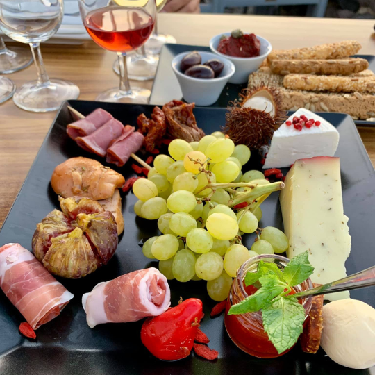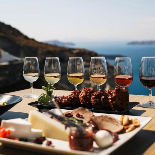 Οι επισκέπτες έχουν τη δυνατότητα να συνδυάσουν τα κρασιά με τοπικά μεζεδάκια, όπως φάβα, ντοματάκια, και καπνιστή μελιτζάνα, απογειώνοντας τη γευστική εμπειρία.