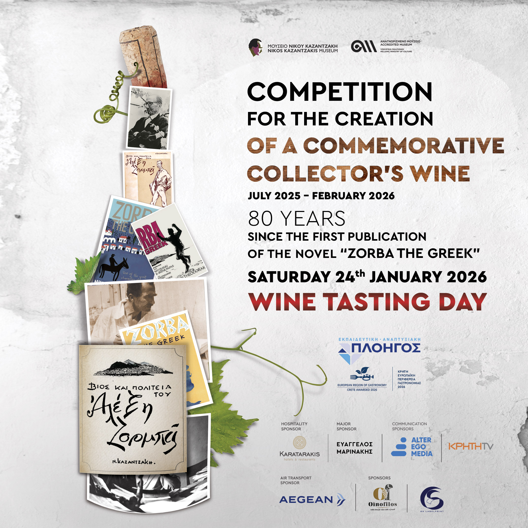 The Tasting Day for the commemorative collector's wine dedicated to Alexis Zorbas was successfully completed on Saturday, January 24, 2026, at the Nikos Kazantzakis Museum, as part of the anniversary collectible wine competition marking the 80th anniversary of the first publication of the novel Life and Times of Alexis Zorbas.