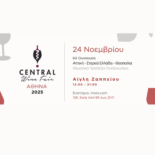 - Προπώληση: 9€ μέσω more.com / https://www.more.com/gr-el/happenings/festival/central-wine-fair-2025/