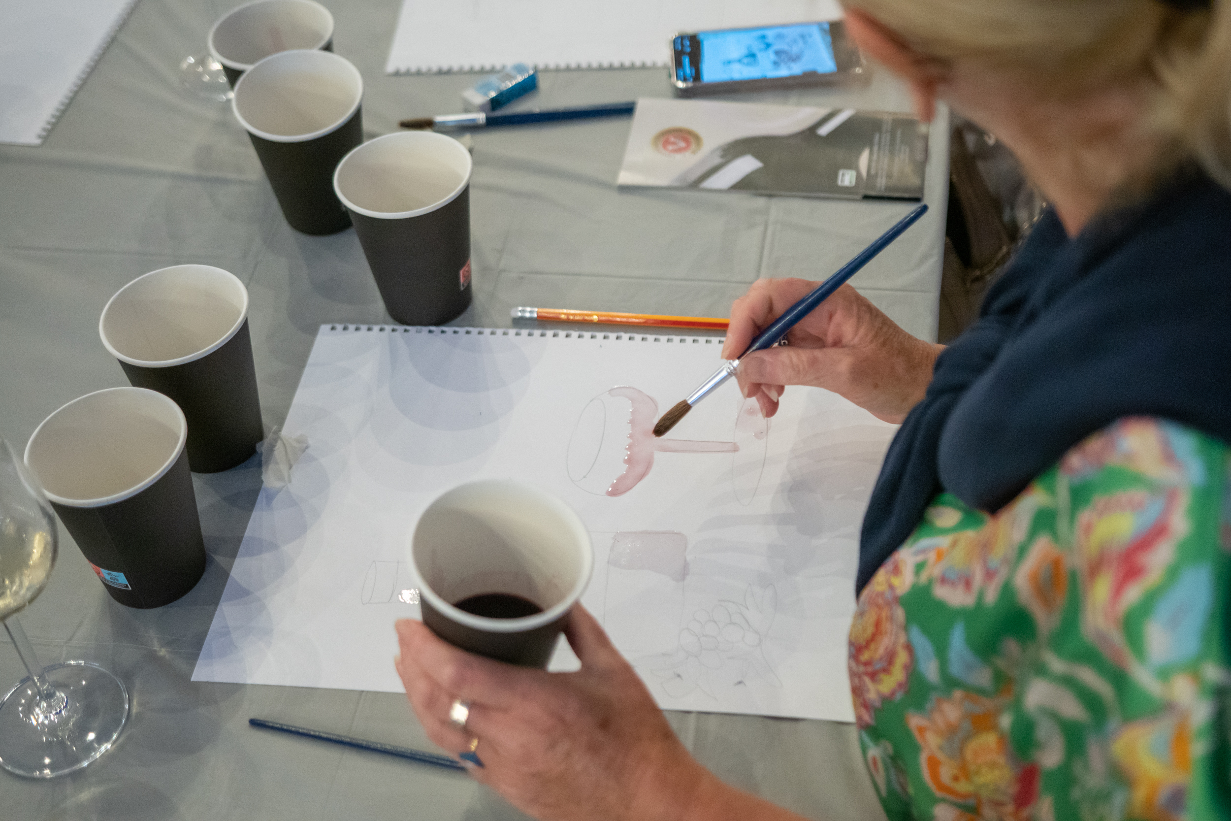 Η εικαστικός Alina Malynovska δίδαξε μια εναλλακτική χρήση του οίνου, στο Εργαστήρι «Ζωγραφική με Κρασί». Μικροί και μεγάλοι ζωγράφισαν με πινέλα και κόκκινο κρασί και δημιούργησαν τα δικά τους «έργα τέχνης»!