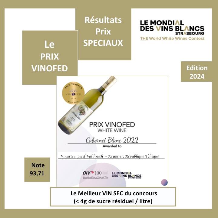TROPHEE VINOFED (καλύτερος ξηρός οίνος του διαγωνισμού) για το Vinařství Josef Valihrach ΤΣΕΧΙΚΗ ΔΗΜΟΚΡΑΤΙΑ