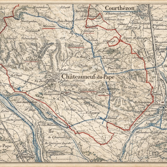 "The appellation of origin is the common good, which in our appellation syndicates unites large, medium-sized and small owners; these form what I could call the rural democracy of quality" wrote Joseph Capus in 1947. - photo credit: INAO (delimitation of the AOC Châteauneuf-du-Pape in 1936)