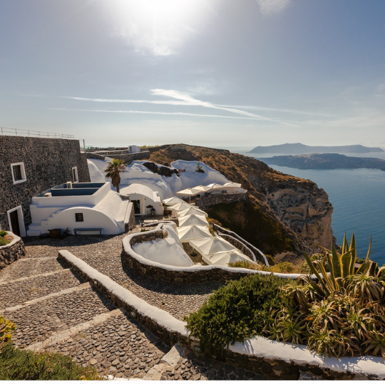 Venetsanos winery is located right above the port of Athinios, overlooking the magnificent caldera of Santorini. The Venetsanos family has a very long tradition of producing wine. Originally was produced for the island and subsequently, it was exported extensively, and particularly to countries such as Russia. It was built in 1947 by the Venetsanos family and became the first industrial winery on the island. Its most distinguishing feature is the structural design, which essentially used gravity, facilitating energy efficiency, at a time when access to electricity and other energy sources was very limited. The winery was built in an unconventional manner constructed from above and moving downwards.