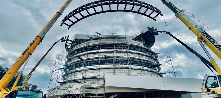 This September, the construction site of the Cité des Climats et vins de Bourgogne is in full swing with the end of the structural works, the continuation of the secondary trades and the installation of the tendril with its key stage, the installation of the "suspension" bridge. The bridge, designed by architect Emmanuelle Andreani of Siz'Ix, is a high-precision structure designed to provide access to the panoramic terrace. The Rougeot Group has achieved a real technical feat by installing a 20-ton self-supporting metal beam at a height of 20 meters, without any intermediate support.