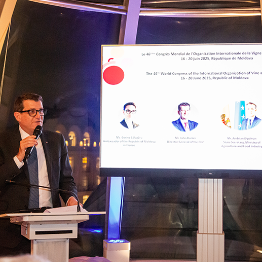 The launch event took place on the rooftops of Paris on 4 February, at the Maison de l'Alsace, bringing together the international community, embassies, and foreign media. Alongside Her Excellency the Ambassador, the State Secretary of the Moldovan Ministry of Agriculture and Food Industry, Mr Andrian Digolean, and Mr Ștefan Lamandi, Director of the National Office of Vine and Wine of Moldova, were present to share their strong commitment and enthusiasm for the organisation of the OIV Congress, as well as to present Moldovan vitiviniculture, past and present.The launch event took place on the rooftops of Paris on 4 February, at the Maison de l'Alsace, bringing together the international community, embassies, and foreign media. Alongside Her Excellency the Ambassador, the State Secretary of the Moldovan Ministry of Agriculture and Food Industry, Mr Andrian Digolean, and Mr Ștefan Lamandi, Director of the National Office of Vine and Wine of Moldova, were present to share their strong commitment and enthusiasm for the organisation of the OIV Congress, as well as to present Moldovan vitiviniculture, past and present.