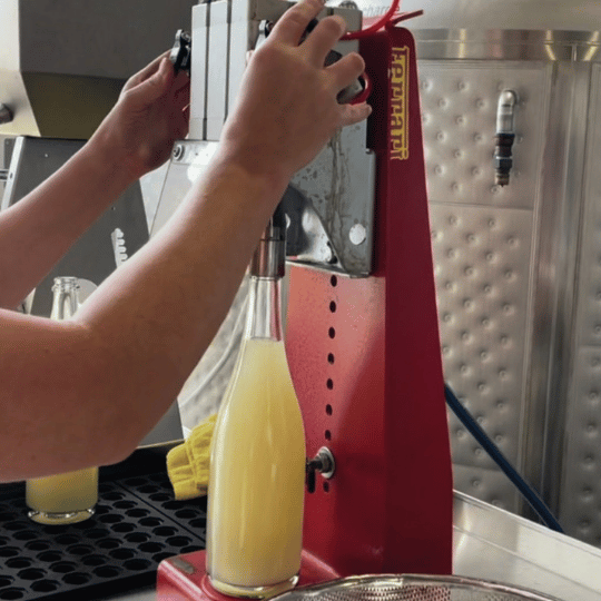 Much of traditional sparkling wine can be done "old school" by hand, including riddling and disgorging, but there isn't an affordable alternative to adding a cork and cage. Anderson said that a corker-cager isn't an easily obtainable piece of equipment, and it's not easy to do it by hand.