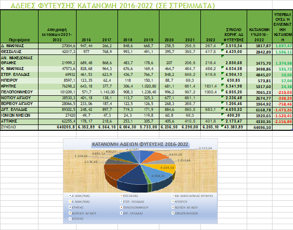 Based on the regional distribution of Planting Permits, as a distribution model, which means that each Region receives Planting Permits equal to 1% of the area planted with vines in that area (absolutely proportional criterion, for all Regions), it is observed that, according series the Regions of Western Macedonia, Thessaly, North Macedonia-Thrace and Central. of Macedonia, have received Planting Permits, significantly increased in area compared to 1% of the already planted areas with vines on them.